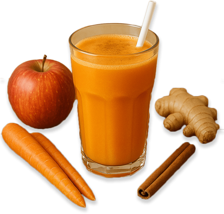 This one feels like fall the second it hits the cup. Crisp apple, sweet carrot, a little heat from ginger, and that warm cinnamon kick people expect this time of year. It’s familiar without being basic.